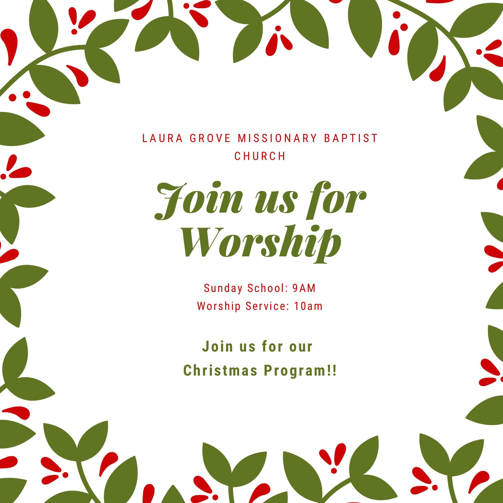 Christmas Program at Laura Grove December 22, 2024 10 am Laura Grove Missionary Baptist Church Come worship with us tomorrow!! We would love to see your face in the place!